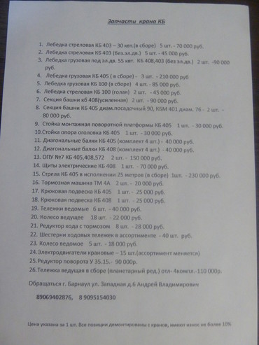 Все типы запчастей на башенные краны в наличии и под заказ